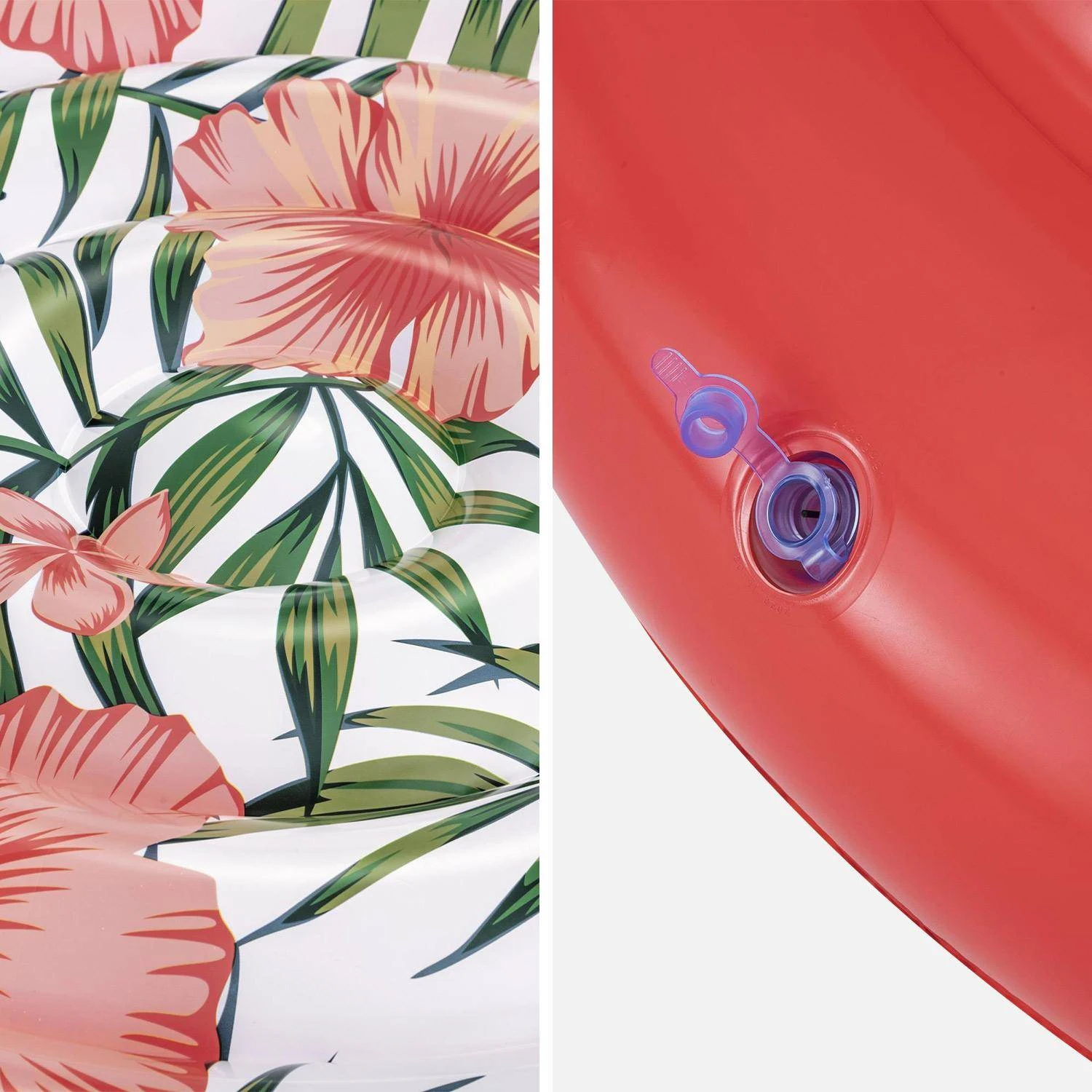 Ses 2 chambres à air permettent un bon maintien et un bon équilibre. Le pvc est confortable et doux au toucher, il apporte une réelle robustesse et une fiabilité à votre bouée. Petits et grands pourront s’y prélasser en toute confiance ! La bouée est équipée d’une corde de sécurité sur tout le pourtour avec des oeillets intégrés.