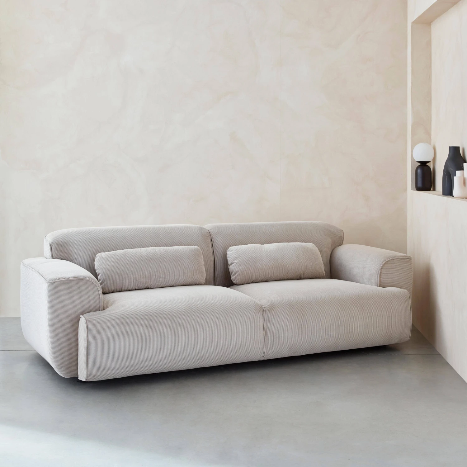 Ce canapé ne manquera pas de rehausser une décoration trop classique grâce à son revêtement en velours côtelé. Son design profondément chic et élégant reste simple mais original. Grâce à son assise profonde pouvant accueillir jusqu’à 3 personnes, ce canapé vous accompagnera dans vos moments de détente le week-end ou après une longue journée de travail. Fourni avec 2 petits coussins rectangulaires déhoussables, vous pourrez sans problème les accompagner d’un plaid bien chaud pour encore plus de style. Pour couronner le tout, vous n’aurez pas à vous embêter quant à son montage, seuls les pieds sont à monter. Offrez-vous un salon minimaliste et réconfortant grâce à la douceur de son tissu velours et à ses lignes raffinées !