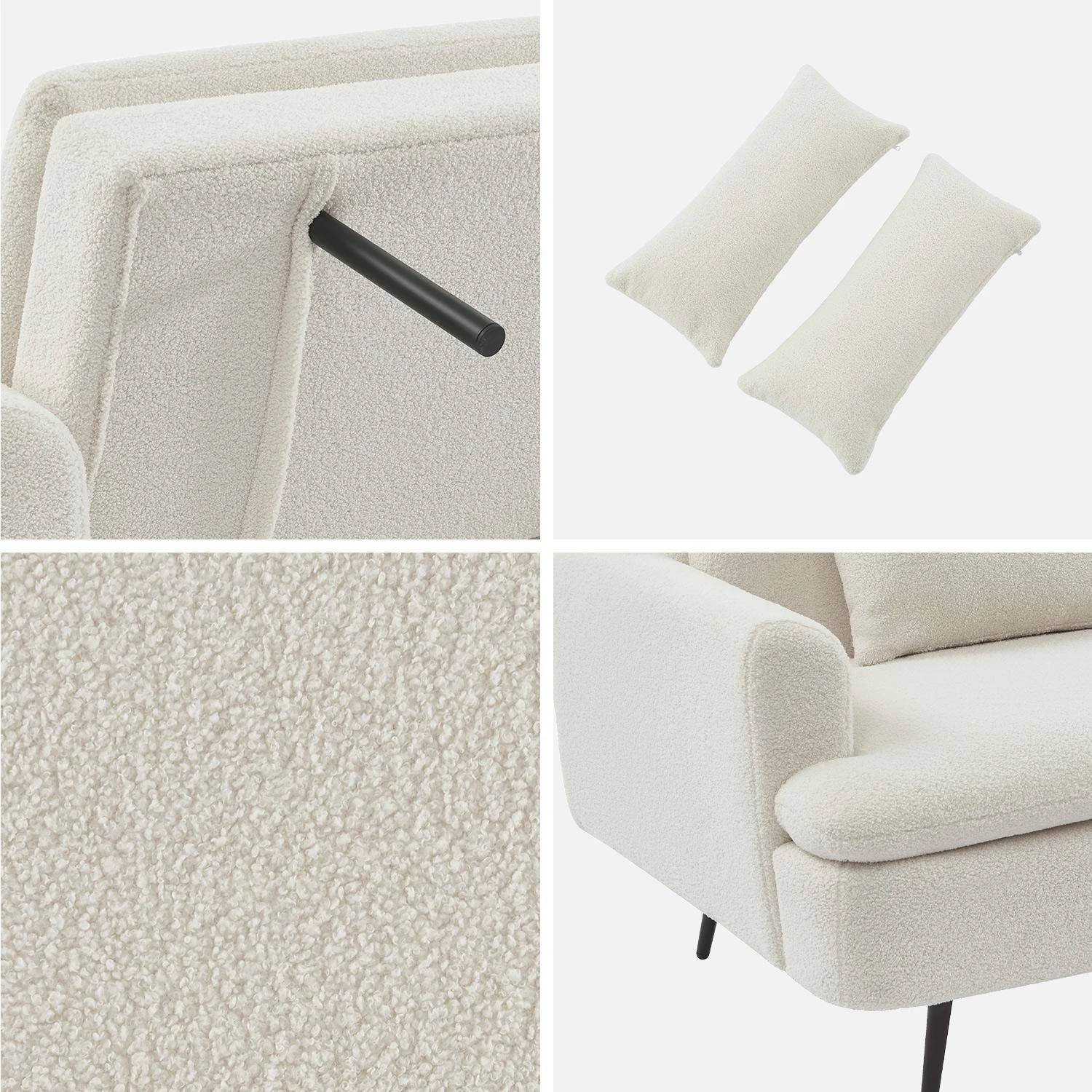 Vous allez adorer John pour sa douceur et son charme sans égal ! Son tissu bouclette, aussi agréable au toucher qu’à la vue, réchauffera à coup sûr votre décoration, pour des moments cocooning à la maison ! Ses 5 pieds compas quant à eux, sont en métal pour une touche de caractère qui rehaussera l’ambiance générale de la pièce. Idéal pour une déco contemporaine, ce canapé trouvera sans aucun souci sa place dans votre intérieur. Choisissez John pour des moments tout doux en toute détente !