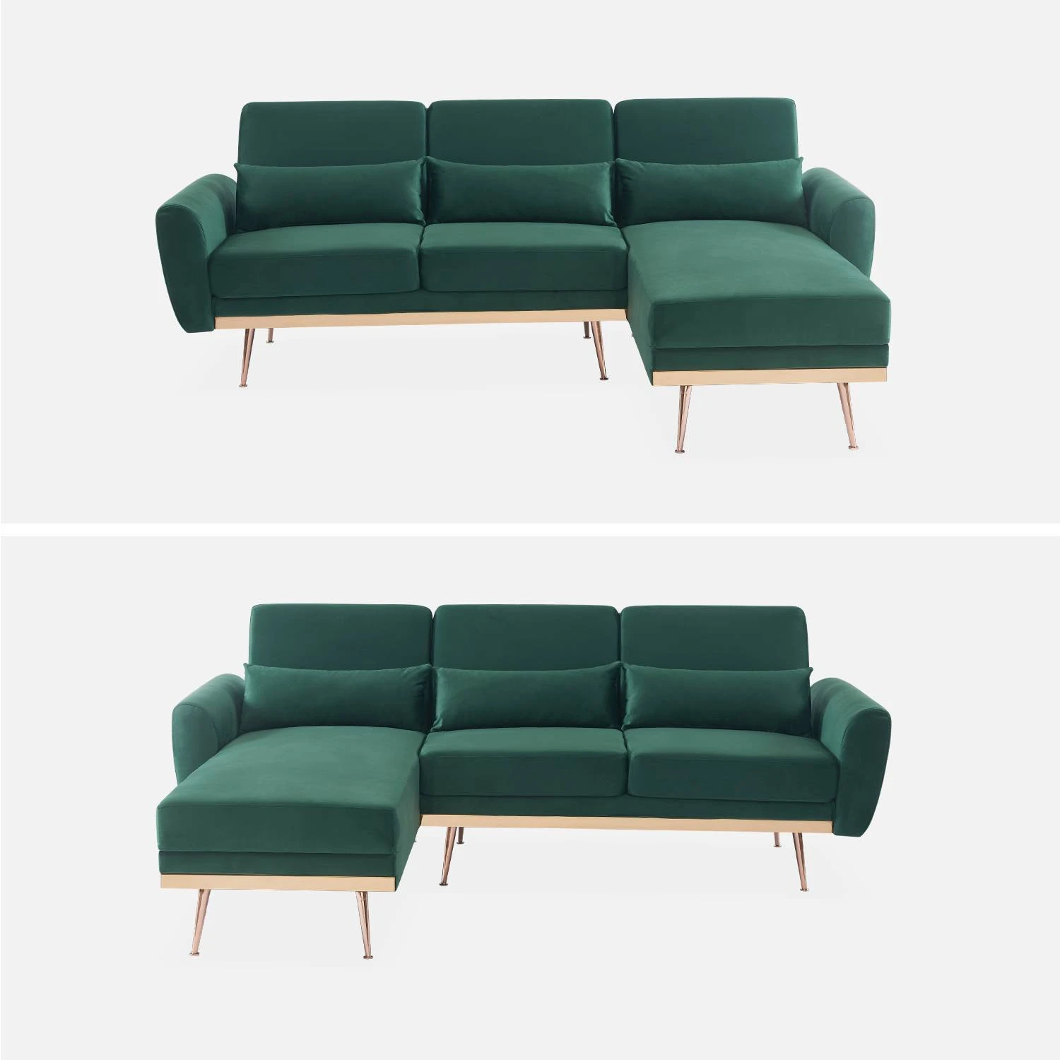 Ce canapé est réversible, la méridienne peut être placée à gauche ou à droite selon l’aménagement de votre pièce et vos envies.