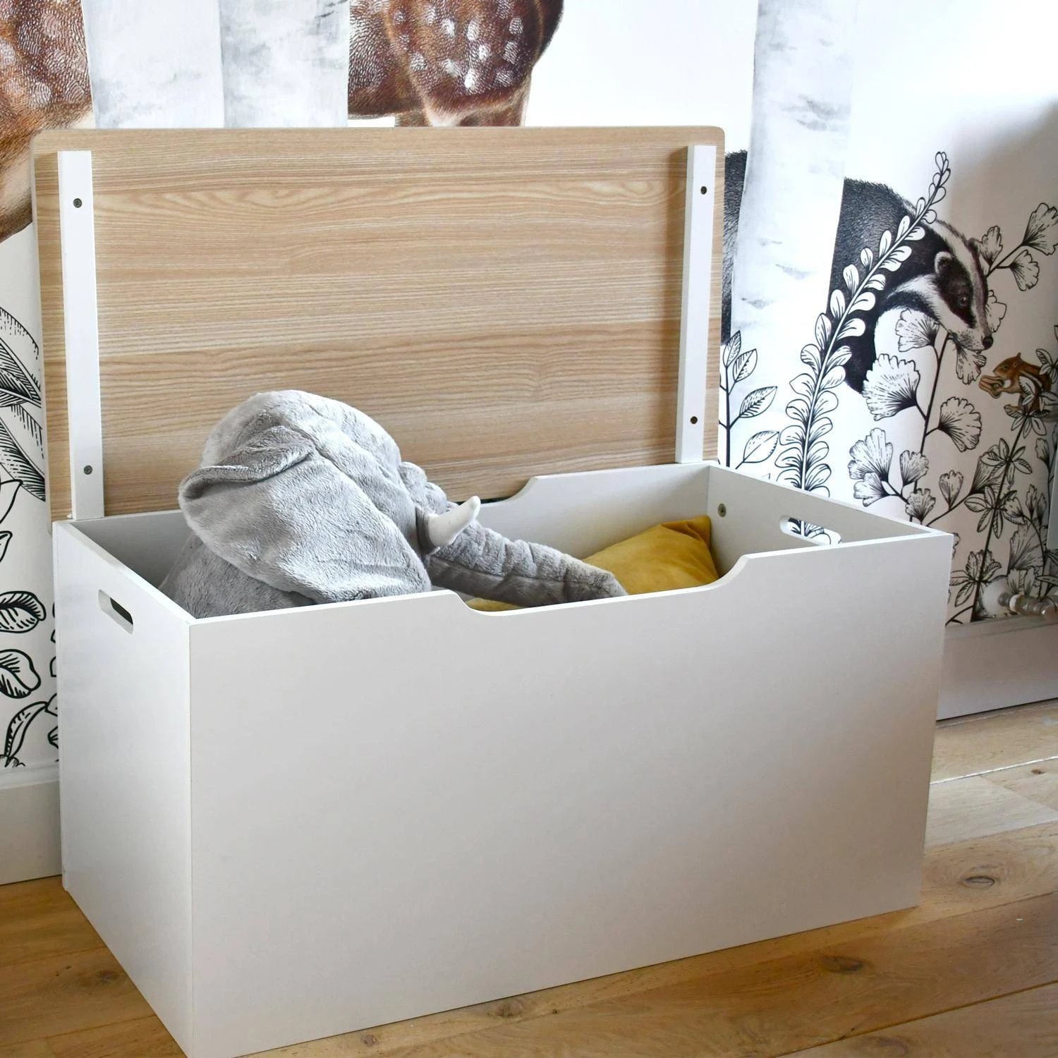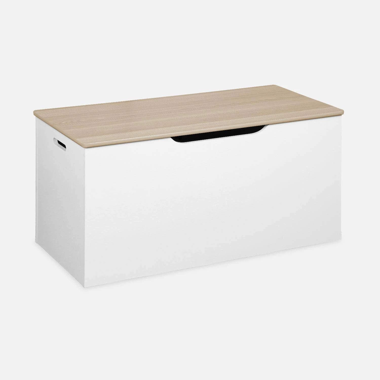 Rangez les doudous et jouets préférés de votre enfant dans ce coffre à jouets TOBIAS. Haut de 40 cm et long de 80 cm, il dispose d’une grande capacité de rangement. Le couvercle rabattable cachera tous les jouets à l’intérieur pour ne pas empiéter sur la décoration de votre salle de jeu, salon ou de sa chambre. Dans un coin ou en bout de lit, nombreux sont les endroits où vous pouvez placer ce coffre à jouet TOBIAS. Le coffre à jouet se bouge facilement et en toute sécurité grâce aux deux poignées latérales qui permettent une bonne prise en main. Fini les jouets qui traînent par terre dans toute la maison !