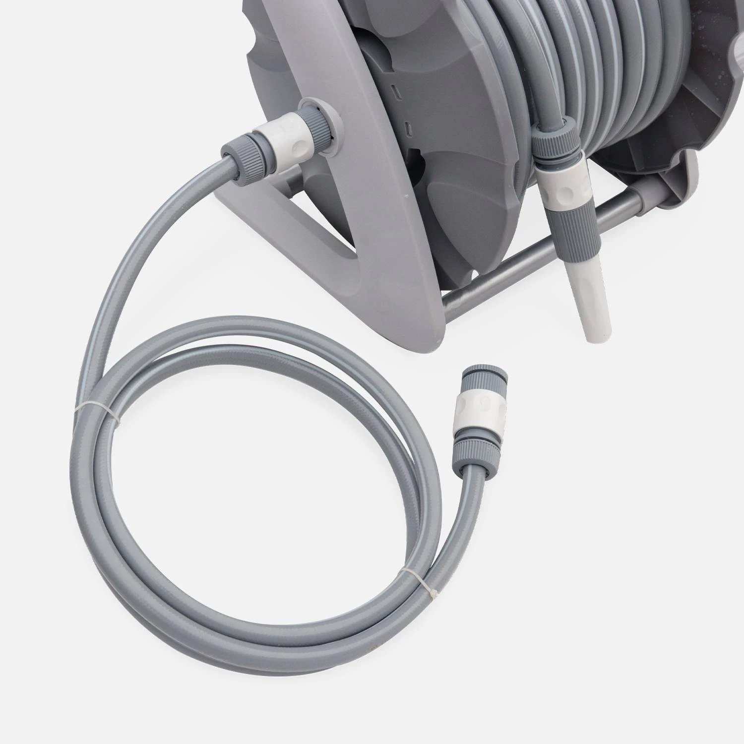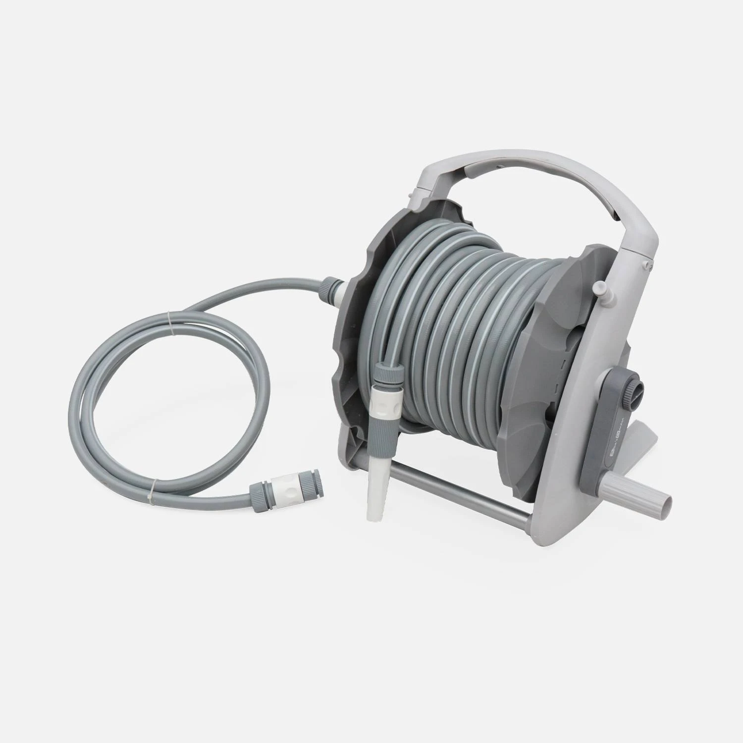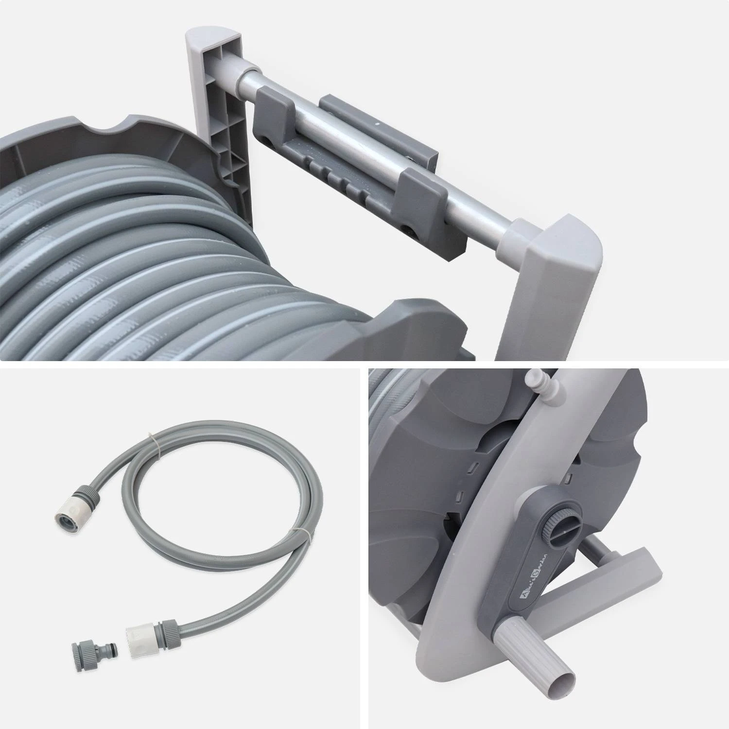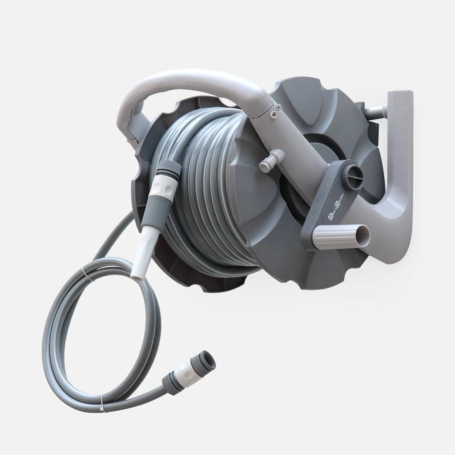 Ce dévidoir est très pratique. Grâce à sa poignée et sa légèreté, ce dévidoir se déplace très facilement. Vous avez aussi la possibilité de le fixer au mur grâce à son attache murale. D’une longueur de 20m, le tuyau d’arrosage se rembobine manuellement grâce à une manivelle, lorsque vous avez terminé d’arroser votre jardin. Avec sa lance multi jets, ce dévidoir offre un jet variable.