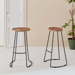 Tabouret De Bar Bois De Manguier Et Acier, Repose Pieds, 75cm (lot De 2) Couleur : Naturel