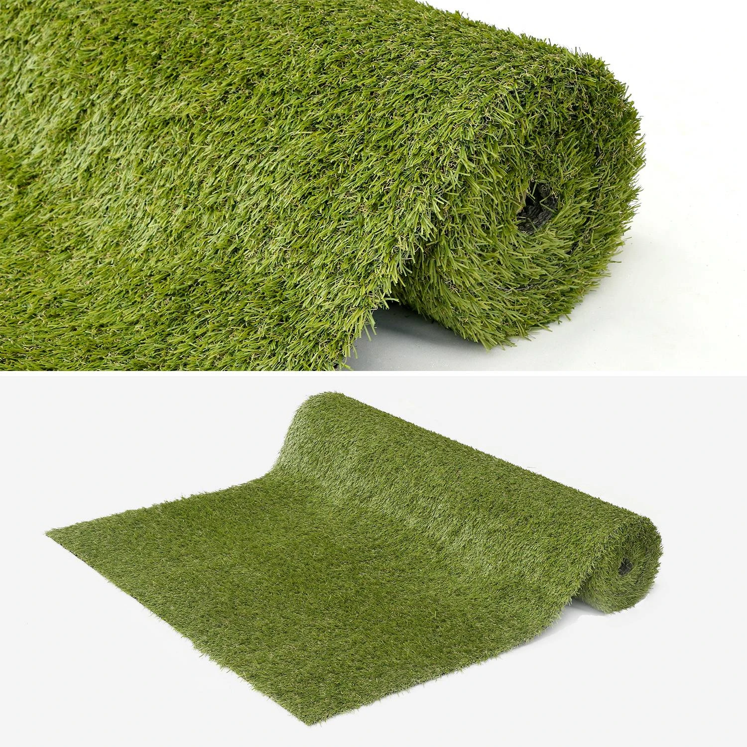 Vous en avez assez de tondre votre pelouse ou vous souhaitez ajouter une touche nature à votre balcon, votre terrasse ou votre cour ? Cette pelouse artificielle est ce qu’il vous faut. Vendu en rouleau, ce faux gazon se pose très simplement et offre un résultat réaliste. En effet, pour un aspect naturel, il est composé de différents brins (droits et frisés) de plusieurs couleurs : vert kaki, vert olive et beige. Le mélange des deux verts apporte la vitalité et l’épaisseur et le beige donne l’effet racine.