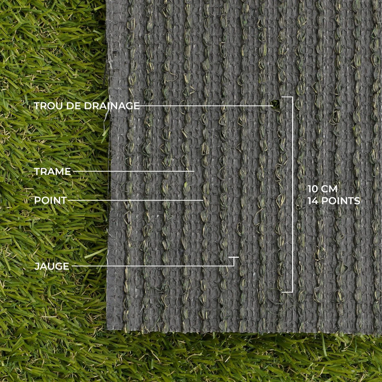 Ce gazon est traité anti UV et est très résistant à l’usure. Cela vous offre une bonne longévité. Par ailleurs, des trous de drainage placés tous les 10 cm permettent une bonne évacuation de l’eau.