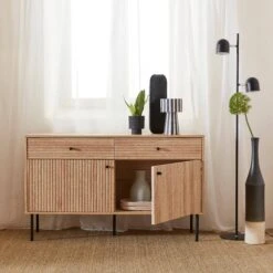 Buffet Scandinave Effet Bois Et Cannage 2 Portes 150 Cm Couleur : Noir
