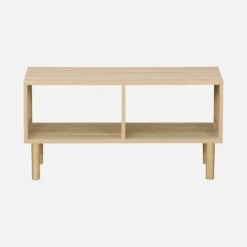 Table Basse Scandinave Décor Bois Rainuré 2 Niches, 1 Tiroir Couleur : Naturel