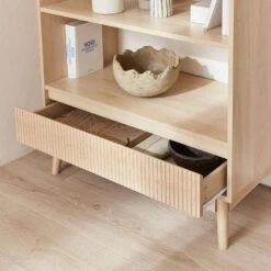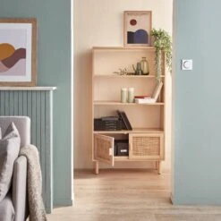 Etagère Bibliothèque Cannage Et Effet Bois 3 Niveaux 2 Portes