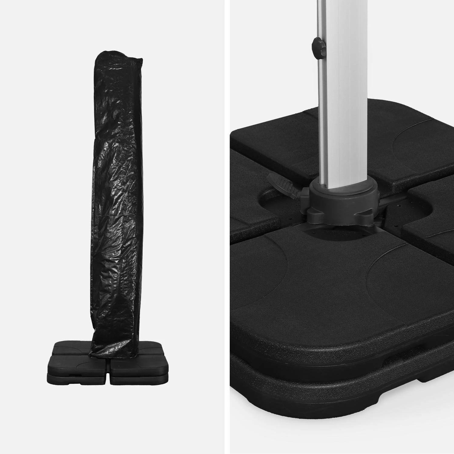 Attention, les dalles nécessaires pour lester le parasol ne sont pas fournies, vous retrouverez une sélection de dalles dans notre boutique (remplissables ou en résine).