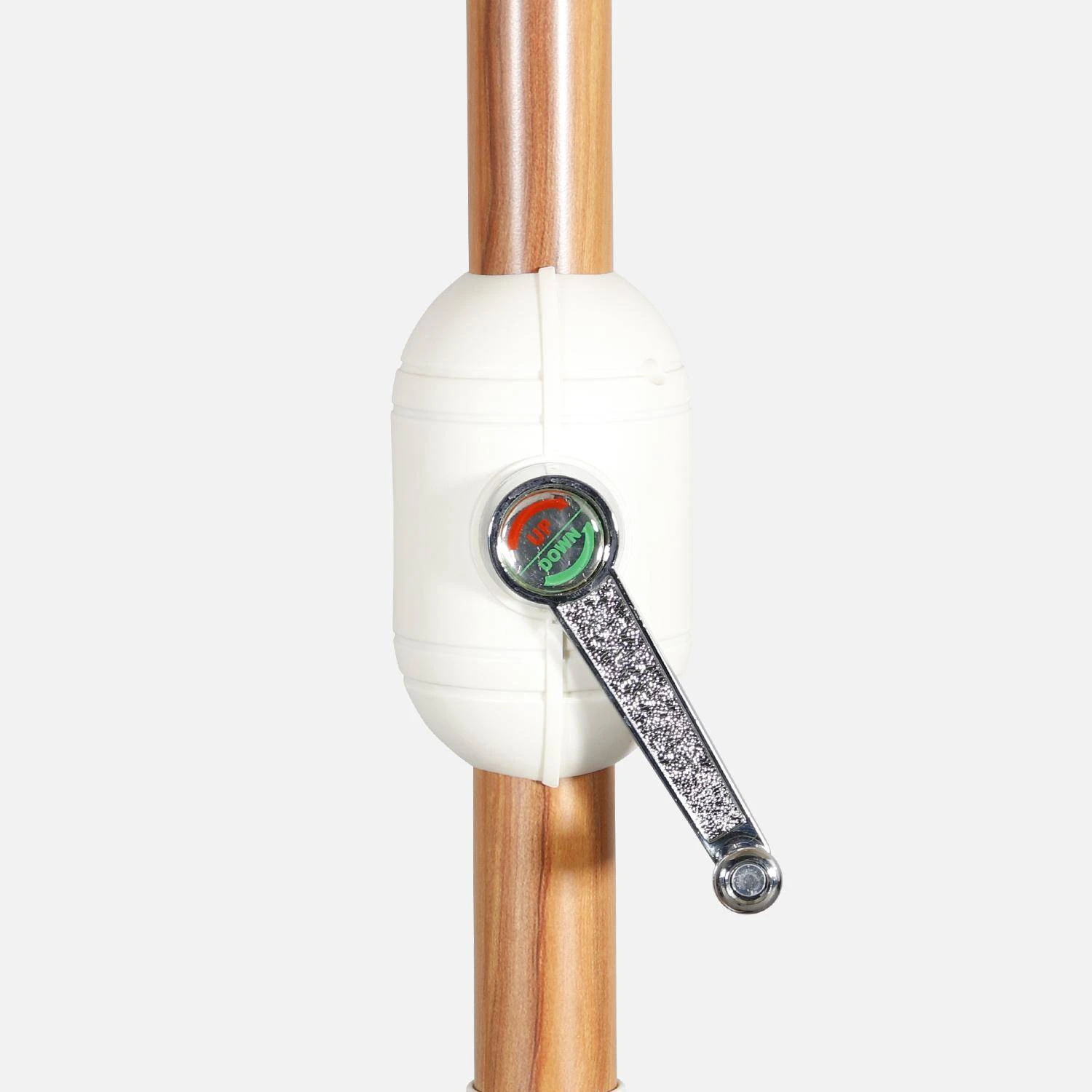 Ce parasol 2 x 3 m est dôté d’un mât imitation bois, vous pourrez ainsi bénéficier des avantages esthétiques du bois : son côté chaleureux et naturel, sans en avoir les inconvénients. Contrairement au bois, cette pergola ne demande aucun entretien ! De plus, ce parasol a l’avantage de s’accorder avec tous les styles de décoration d’extérieur, elle se fondera parfaitement dans votre jardin.