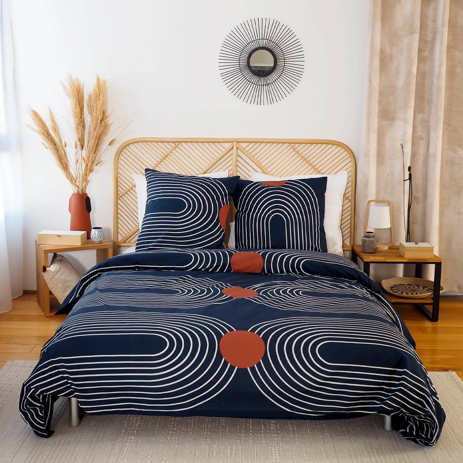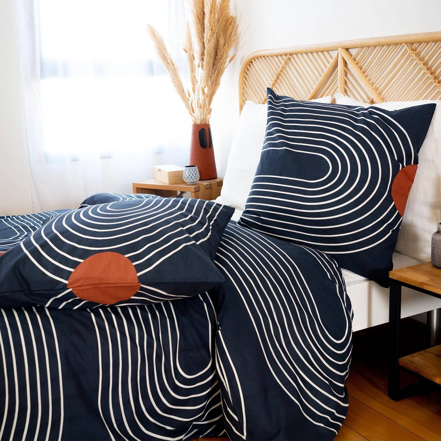 Habillez votre lit avec cette jolie parure de lit aux courbes oblongues. Le coton adouci vous garantit légèreté et douceur et vous offre un sommeil confortable aussi bien en été qu’en hiver.