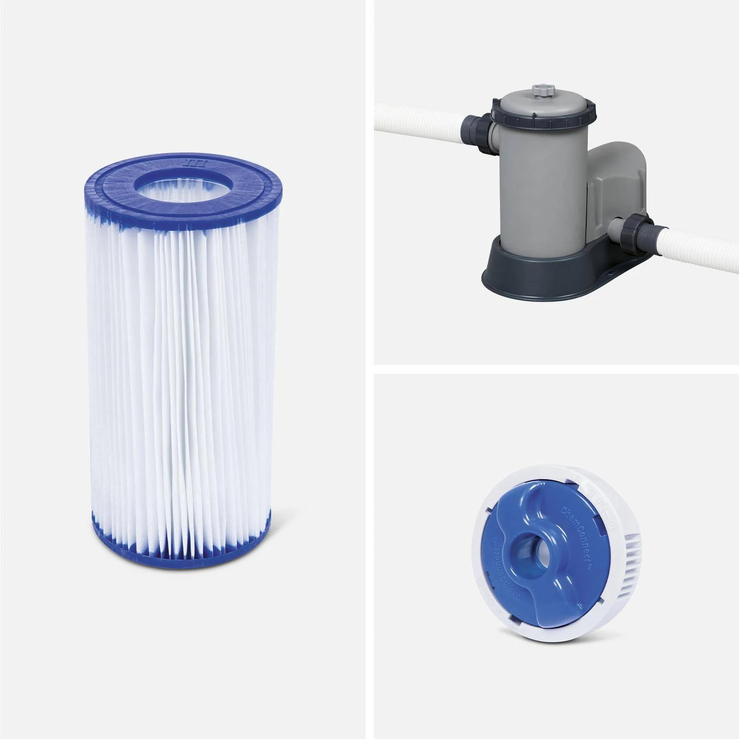 La piscine Vostok est livrée avec un filtre à cartouche de 5678L/h pour une eau toujours plus propre. Elle est très facile à installer, 30 minutes suffisent ! Pratique, elle se démonte facilement pour être stockée l’hiver, sans difficulté. La piscine est accompagnée d’une échelle 4 échelons, d’une bâche de protection 4 saisons et d’un diffuseur Chemconnect. Il vous sera très simple de la remplir grâce au robinet et à l’adaptateur tuyau d’arrosage inclus.
