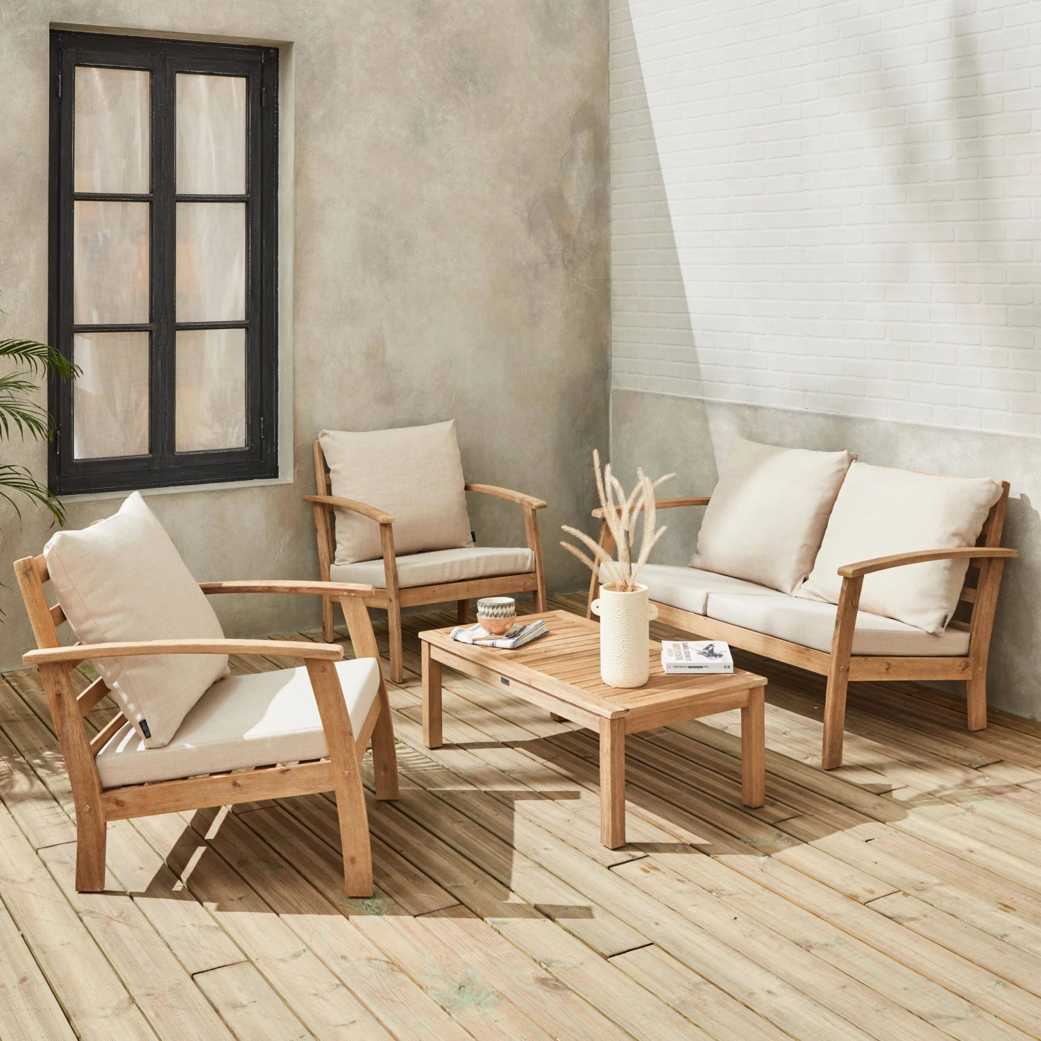 Conçu en acacia, ce salon de jardin a un style résolument moderne et élégant. Son design est épuré, cela lui permet de s’intégrer aussi bien en intérieur qu’en extérieur.