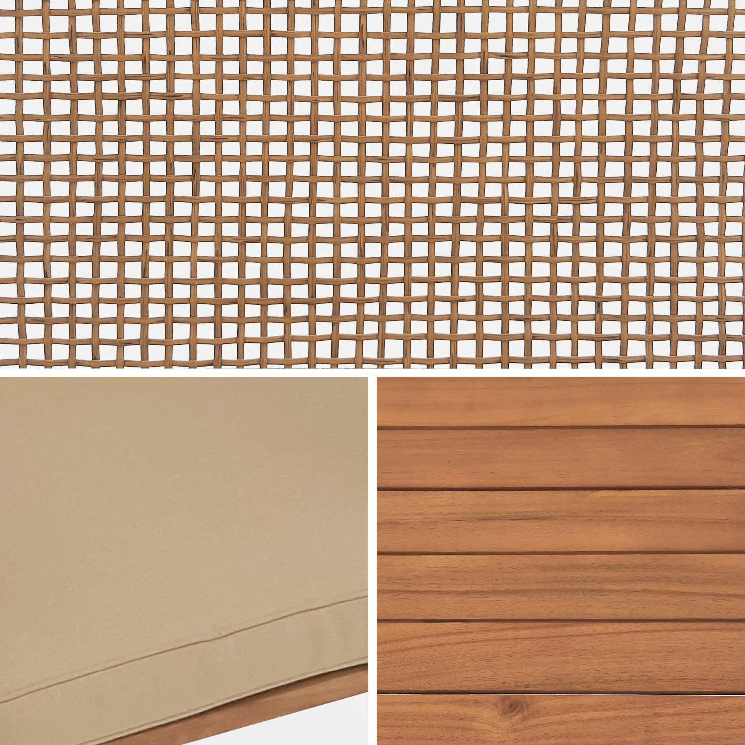 Avec une structure en acacia cet ensemble est robuste. Dans une démarche écologique, nous avons opté pour de l’acacia issu de plantations certifiées FSC. Le bois est recouvert d’une huile teintée qui le protège et lui laisse une teinte la plus proche possible du brut.