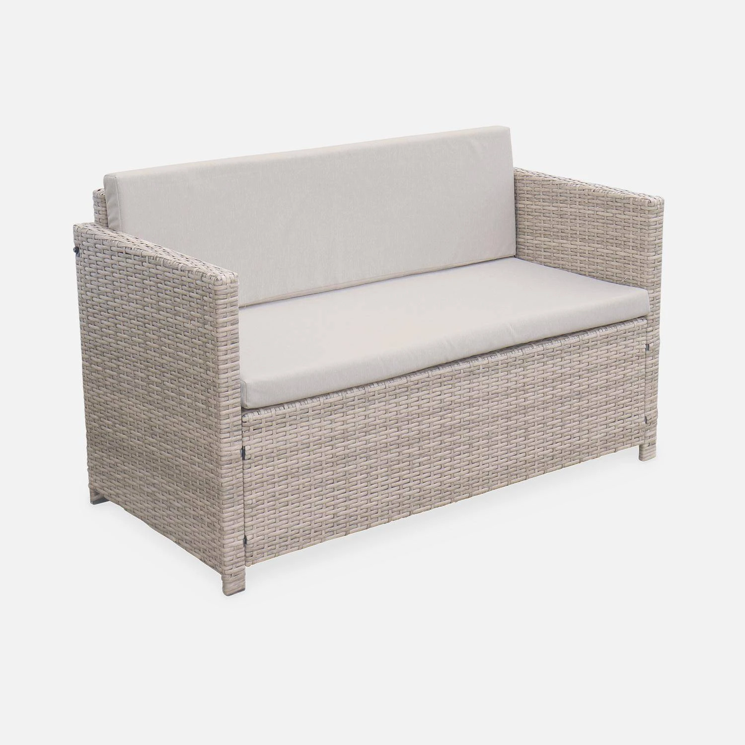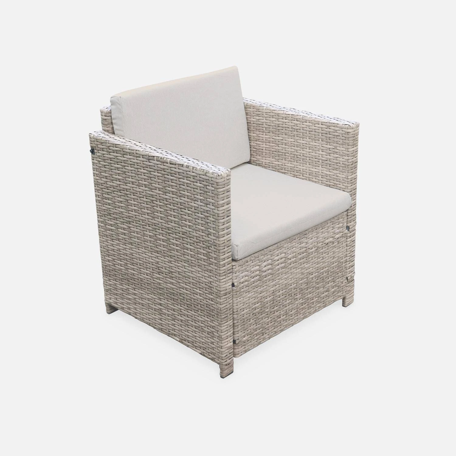 sweeek sélectionne avec attention la qualité de la matière choisie pour le tressage. De ce fait, la durée de vie du Perugia est exceptionnelle ! La résine tressée sweeek supporte les rayons du soleil et les intempéries (neige/ pluie / eaux salées). Les coussins sont déhoussables et résistants à l’eau. La housse est en polyester avec une densité de 220g/m². Pour empêcher la rouille de se développer, les structures métalliques sont en acier galvanisé recouvert d’une couche de peinture epoxy. Le plateau en verre de la table basse est en verre trempé de 5mm d’épaisseur. C’est un verre 5 fois plus résistant que le verre traditionnel !
