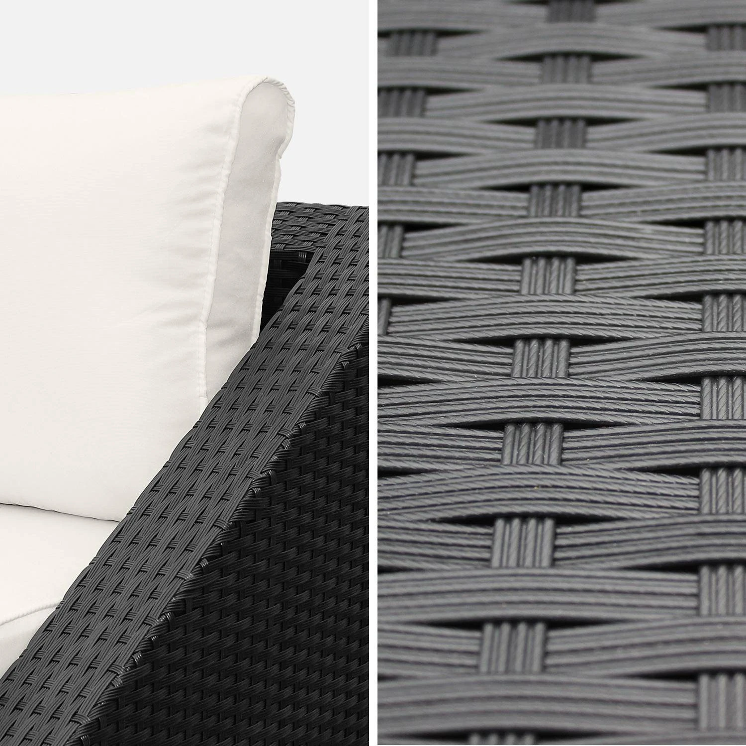 Noble et résistante, la résine tressée est un matériau tendance. Sa ressemblance au rotin naturel confère à cet ensemble un style chic et moderne. Cela lui permet d’être installé aussi bien en intérieur qu’en extérieur. Les coussins sont élégants grâce à leurs bords gansés.