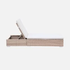 Bain De Soleil Textilène Matelassé Et Aluminium, Multiposition Et Roulettes Couleur : Blanc / Gris