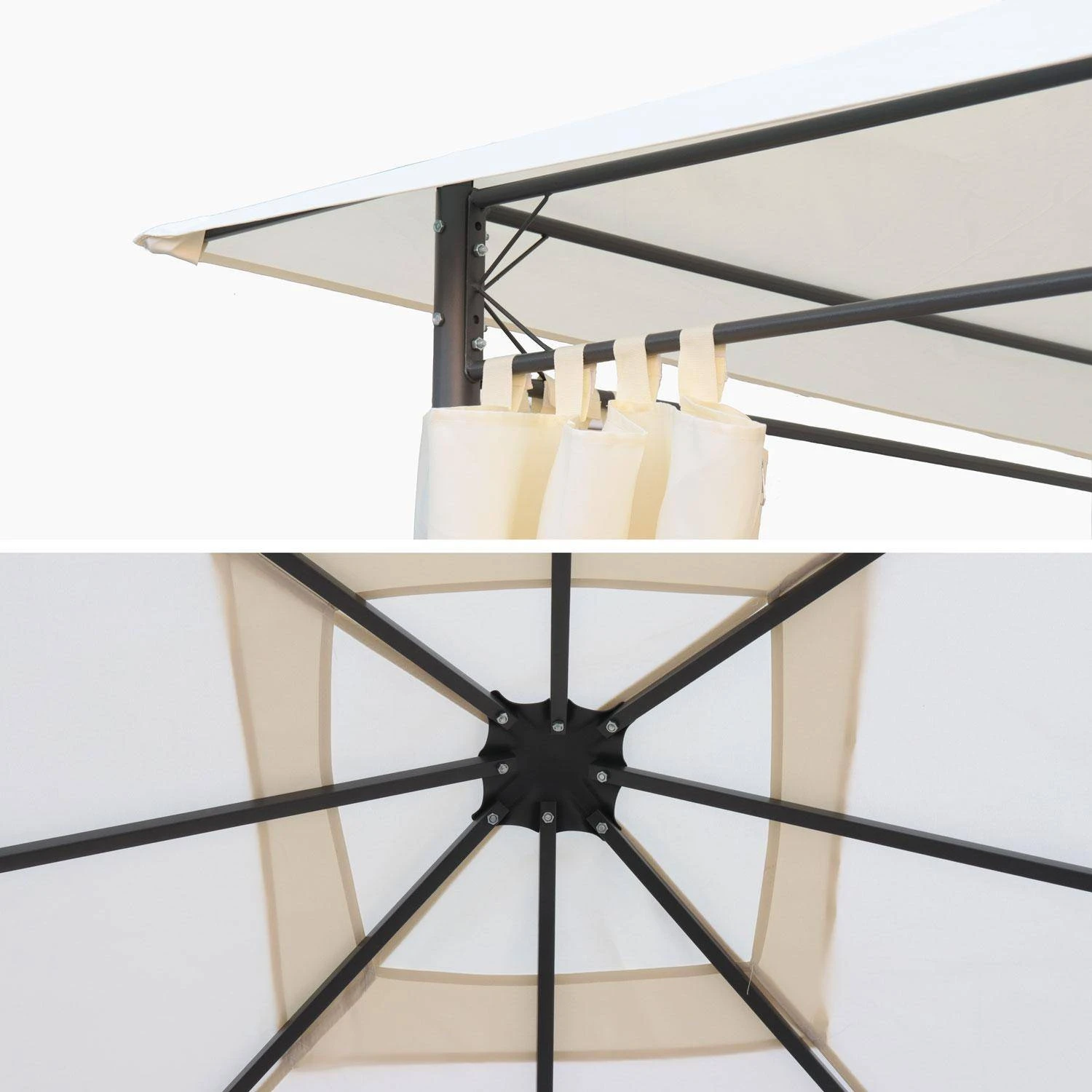 Cette toile est compatible avec la tonnelle 3x3m Elusa sweeek. Nous ne pouvons garantir sa compatibilité avec d’autres pergolas.
