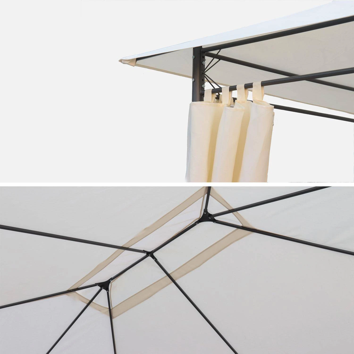Cette toile en polyester vous permet de renouveler ou de changer la couleur de la toile de toit de votre tonnelle 3 x 4 m Divio. Sa fonction principale est de protéger du soleil, mais elle est déperlante.