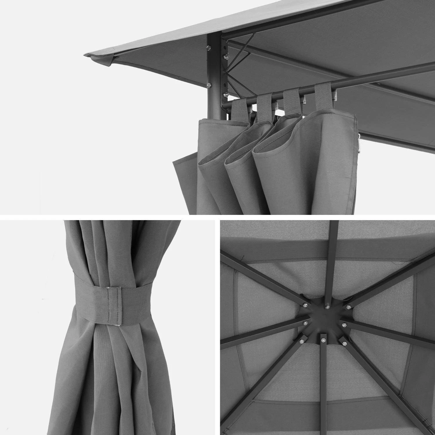 Divio est une très jolie tonnelle adéquate pour vos brunchs et apéritifs dans le jardin. Très esthétique, elle est également très pratique car elle peut se fermer complètement, si besoin, grâce aux rideaux fournis. Les rideaux se ferment grâce à une fermeture éclair. Lorsqu’ils sont ouverts, ils se fixent aux pieds de la pergola à l’aide d’une bande velcro.