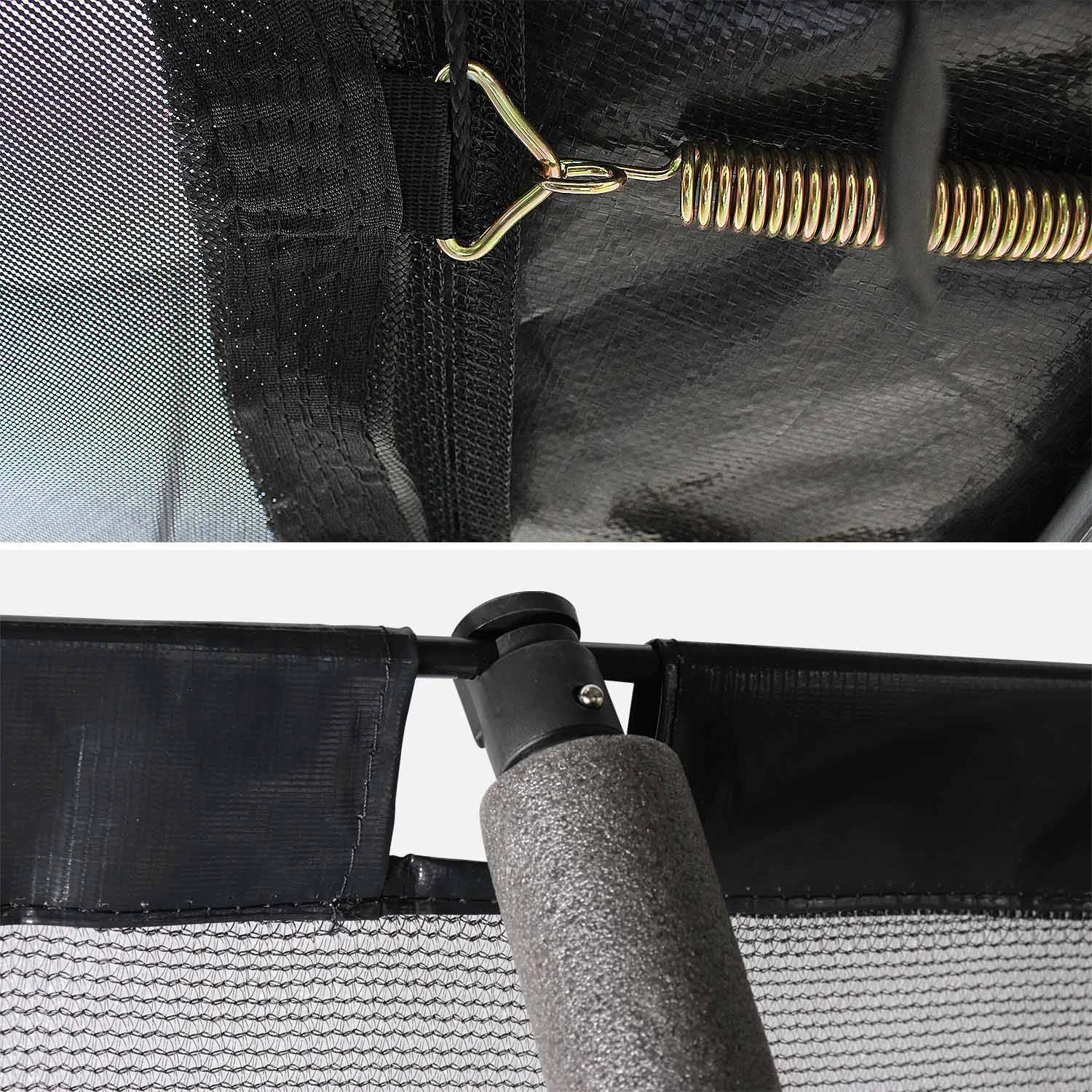 Le filet est situé à l’intérieur de la zone de saut, ce qui assure une sécurité optimale. Une fois à l’intérieur du trampoline, l’accès aux ressorts est impossible lorsque le filet est fermé.